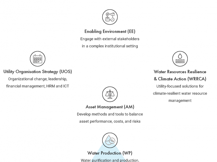 Phase 2 (2022-2026) builds on the partnerships, lessons learned and results of Phase 1 and seeks to further strengthen the performance of the partner utilities and accelerate on SDG6 impacts with the objective of reaching an additional 3.5 million people towards the 10 million target. Further intensification of knowledge management will enable current local utility partners to share their gained knowledge and experience with colleague utilities in their country and region. Phase 2 has a stronger emphasis on the DGIS focus regions which has resulted in adding several new partner utilities and the phasing out others.